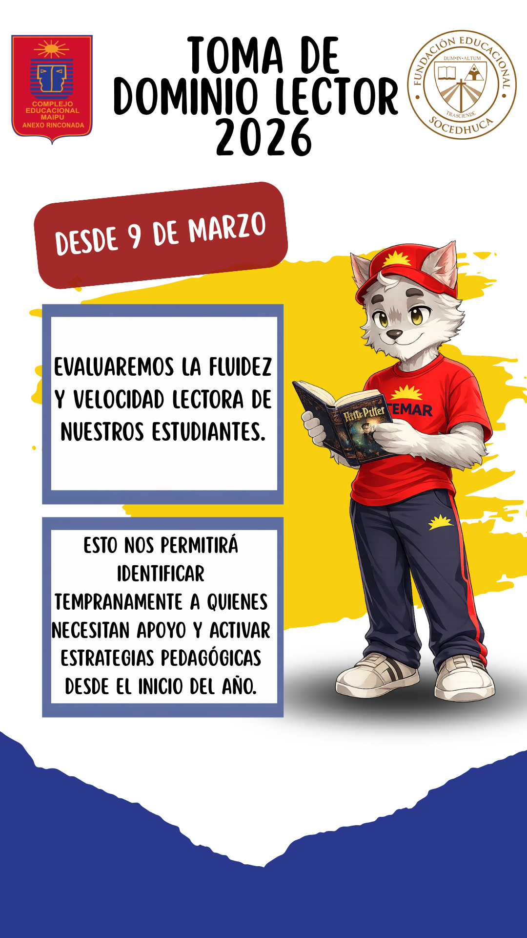 Durante la semana del 9 de marzo, nuestra escuela llevará a cabo la primera evaluación de Dominio Lector del año. Esta medición busca identificar la calidad (fluidez) y la velocidad con la que nuestros estudiantes leen textos acordes a su nivel.